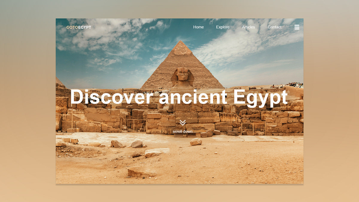 Client: Go to Egypt Concept: Create a whole new web design for Go to Egypt website. The goal is to create a clean visually compelling website, that grabs traveler's attention and makes them want to visit Egypt and see this amazing country.